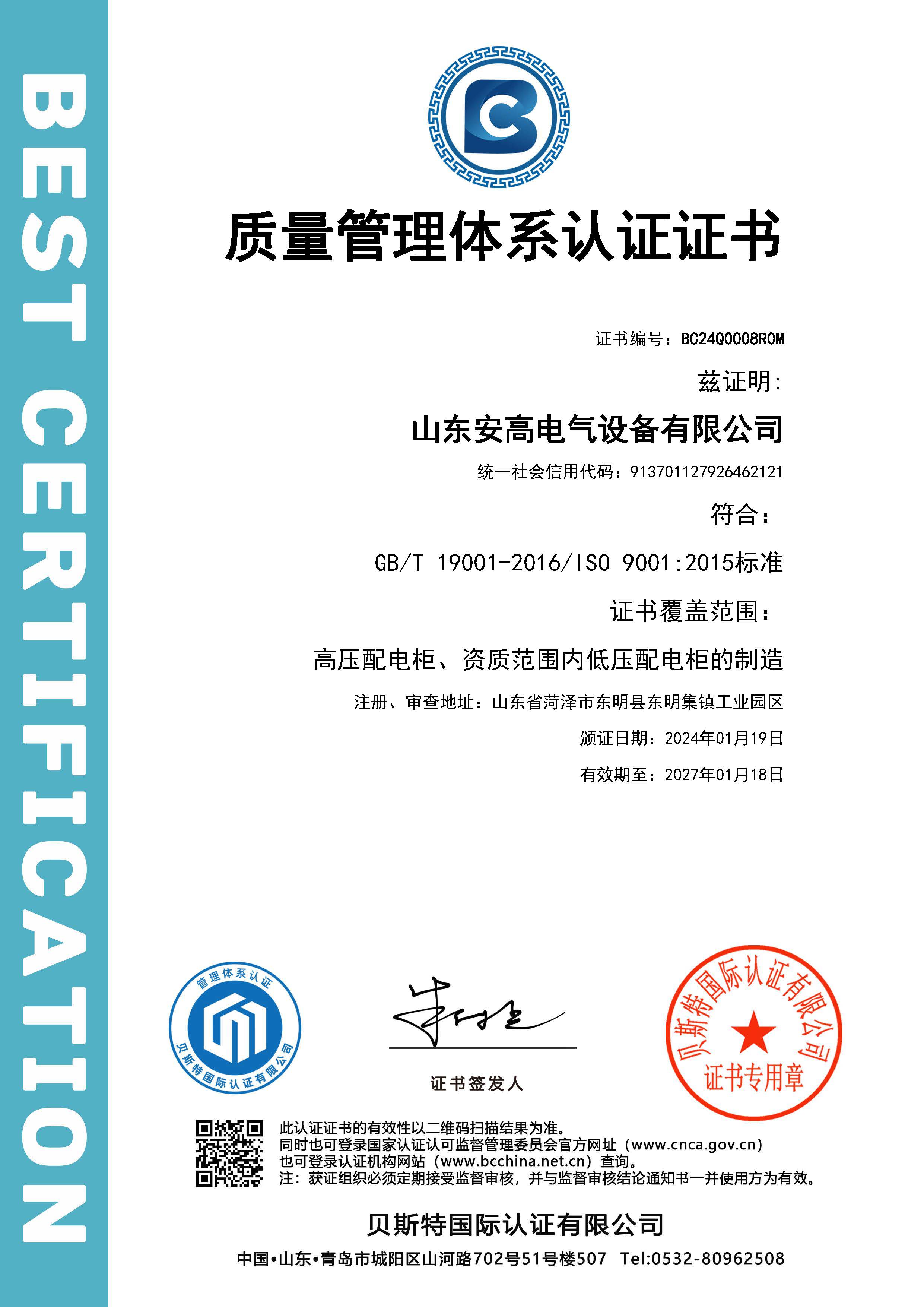 • 質量管理體系認證